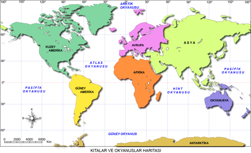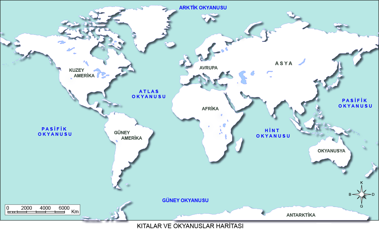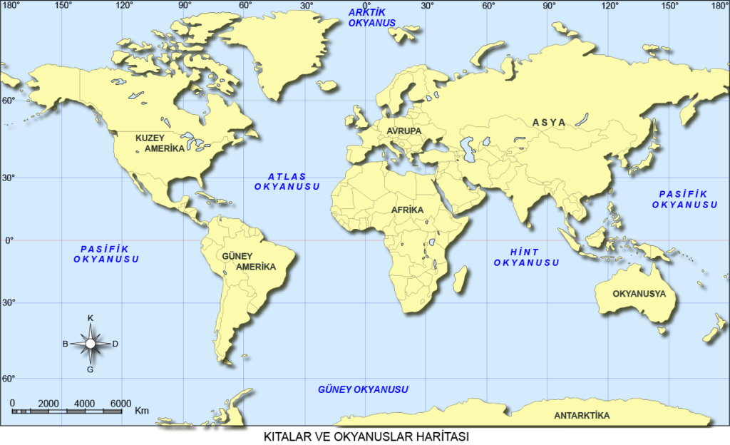 Kıtalar ve Okyanuslar Haritası