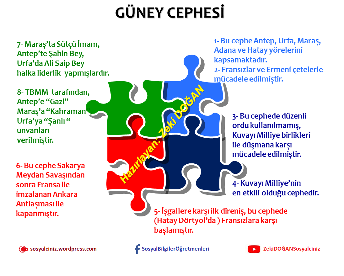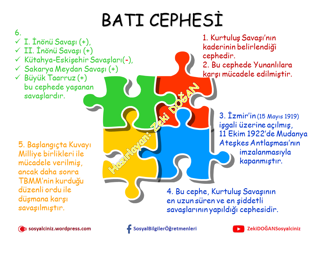 Anasayfa » Bilgi Kartları » T.C. İnkılap Tarihi Bilgi Kartları » Kurtuluş Savaşında Cepheler Doğu-Güney-Batı Cepheleri