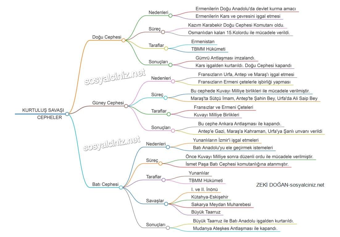 Kurtuluş Savaşında Cephelerkonusunu kavratmak için hazırlanmış zihin haritasıdır.