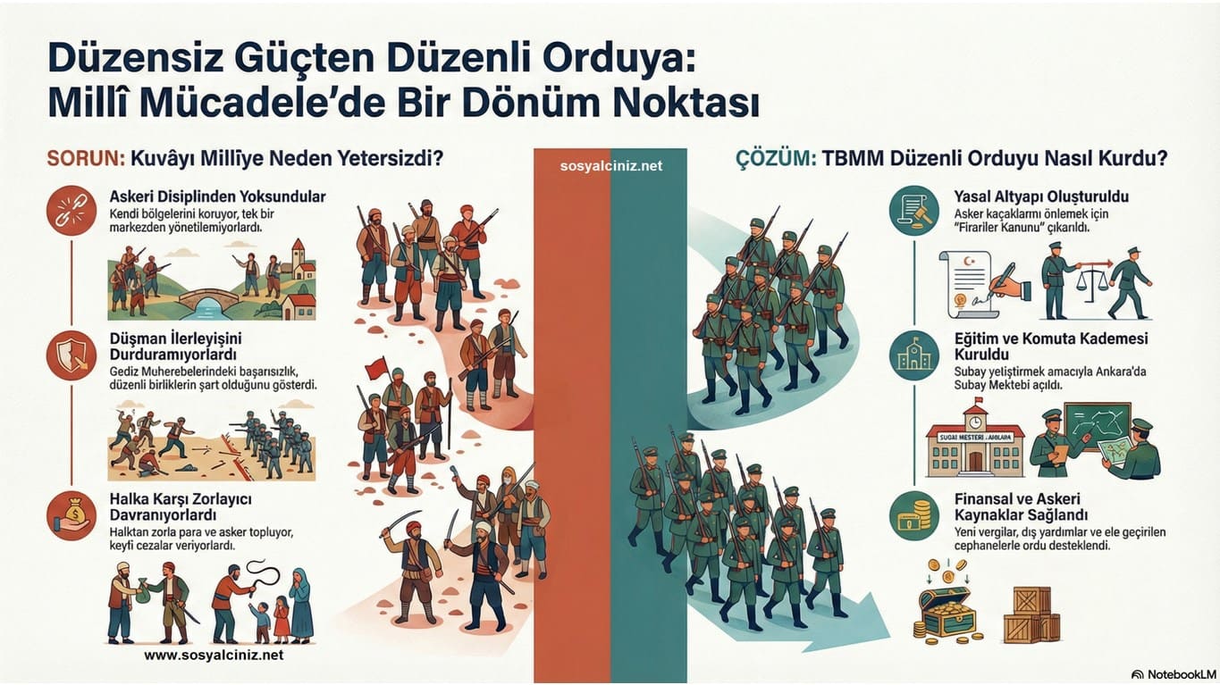 Kuvayı Milliyeden Düzenli Orduya geçişi ve Düzenli Ordunun Kuruluşunu gösteren infografik çalışmadır…