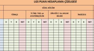 Öğrencilerinizin derslere göre doğru yanlış sayılarını girdiğinizde yaklaşık LGS puanları ortaya çıkacaktır.