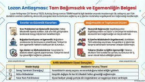 Lozan Barış Antlaşmasının önemli maddelerini yorumlayan infografik çalışmadır…