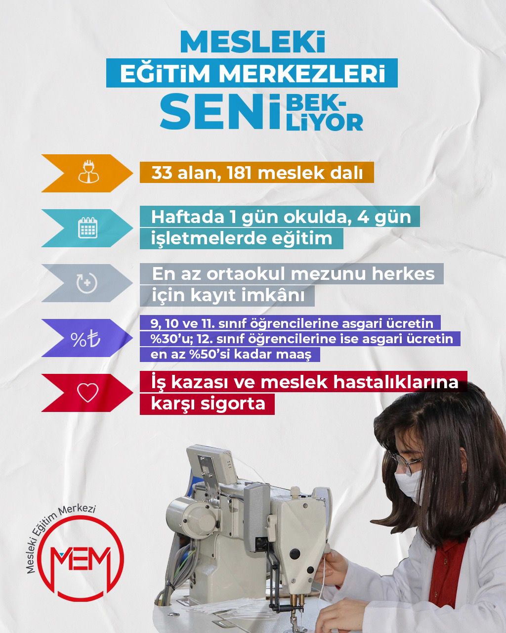 • Ortaokulu bitirenlere zorunlu lise eğitimini mesleki eğitim merkezlerinde tamamlayabilme fırsatı