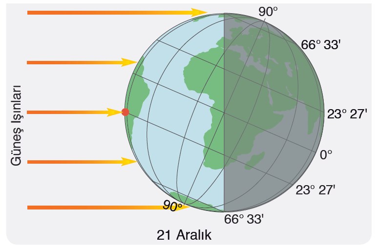 21 Aalık’ta güneş ışınlarının geliş açısı