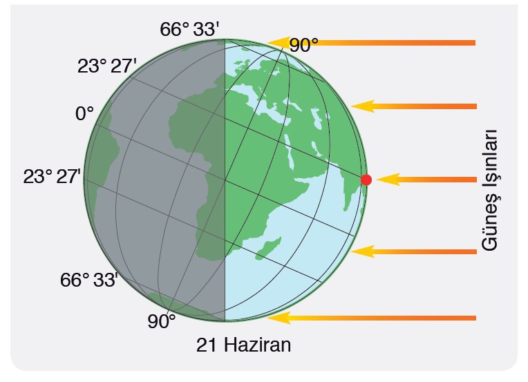 • 21 Haziran’dan sonra Kuzey Yarım Küre’de yaz, Güney Yarım Küre’de ise kış mevsimi yaşanmaya başlar.