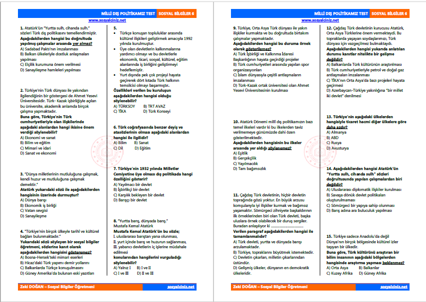İlk Türk Devletlerinin Medeniyetimize Katkıları Test 2 6.Sınıf Sosyal Bilgiler Türkistan’da Kurulan İlk Türk Devletlerinin Medeniyetimize Katkıları konusunu kapsayan testtir....