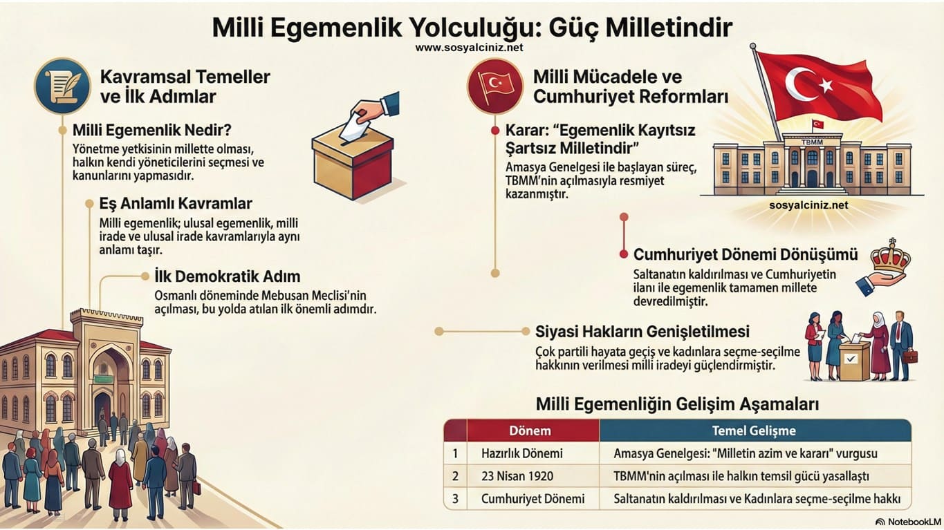 Milli (Ulusal) Egemenlik ve Milli (Ulusal) Bağımsızlık kavramları için hazırlanmış infografiklerdir…