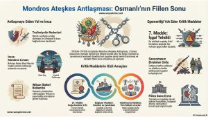 Mondros Ateşkes Antlaşması, maddeleri ve Osmanlı Devletinin fiilen sona ermesini gösteren infografik çalışmasıdır…