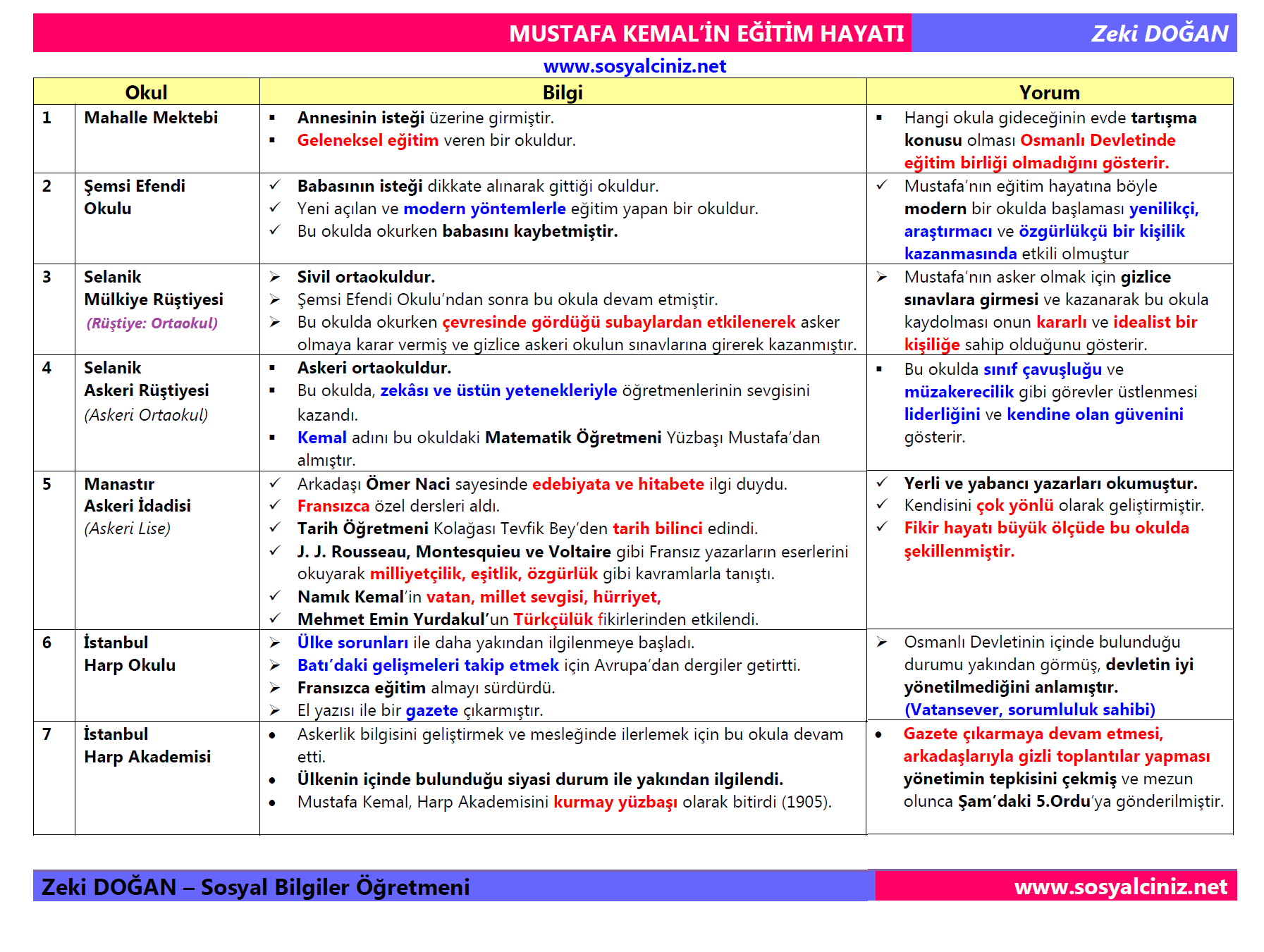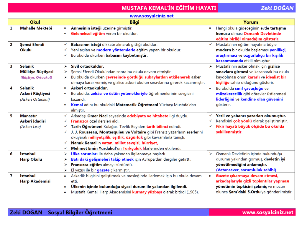 Mustafa Kemal’in Eğitim Hayatı
