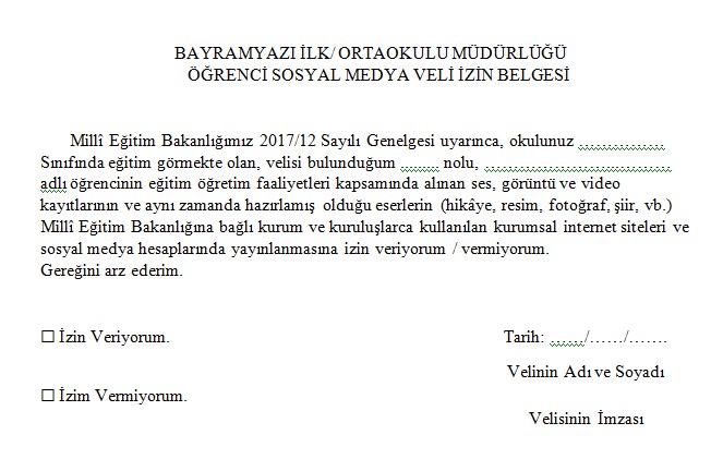 Öğrenci Sosyal Medya Veli İzin Belgesi