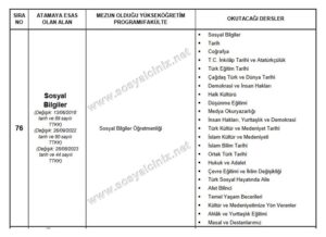 Örnek Olarak “Sosyal Bilgiler” alanını ele alalım; “Sosyal Bilgiler Öğretmenliği” mezunları bu alana öğretmen olarak atanabilmektedirler.