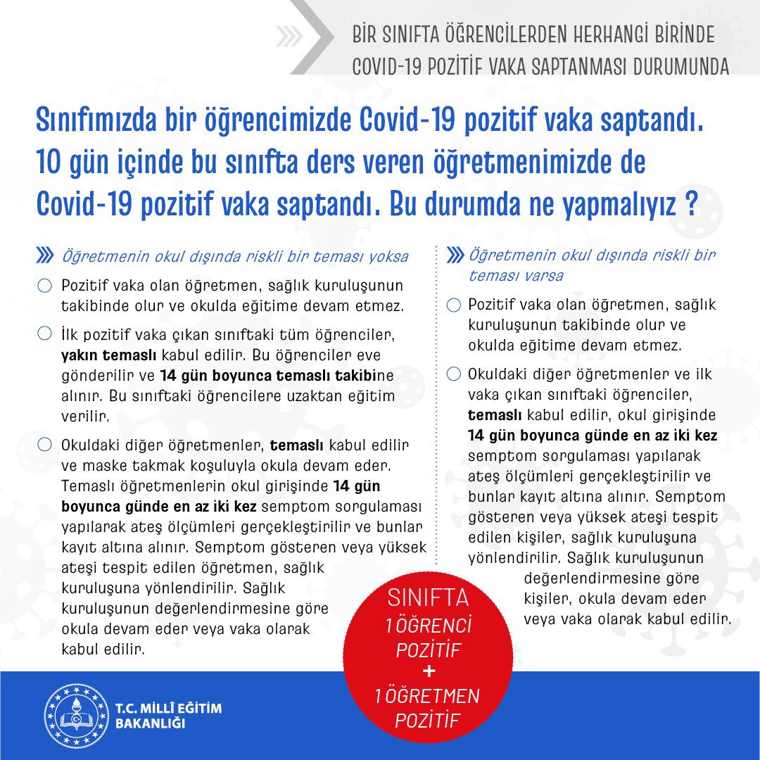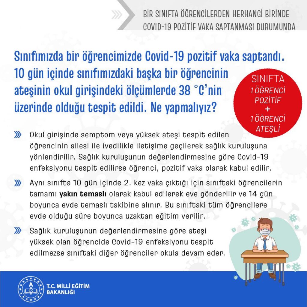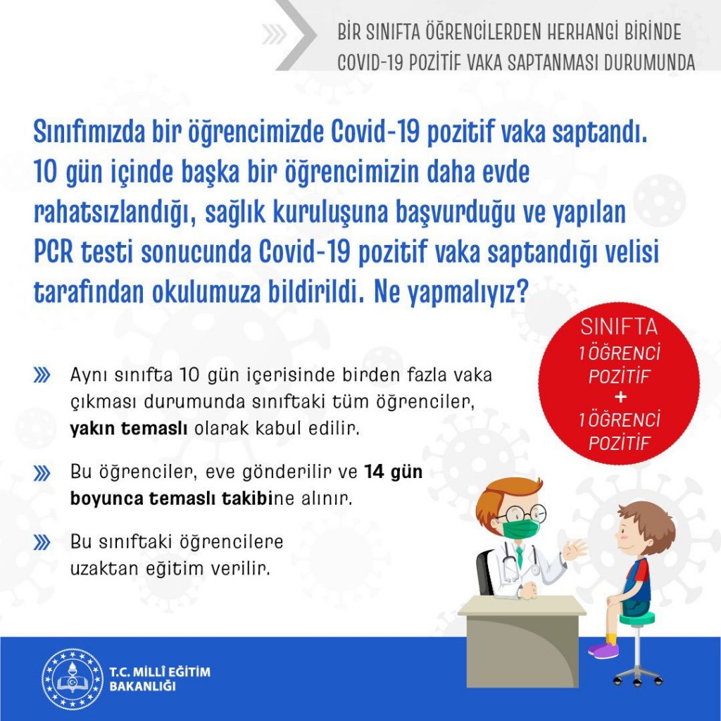 Okullarda Covid-19 Pozitif Vaka Saptanması Durumunda Yapılması Gereken Uygulamalar