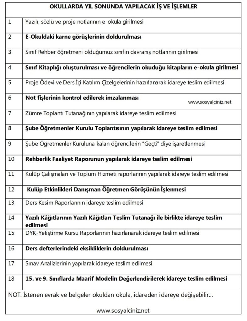 Okullarda Yıl Sonunda Yapılacak İş ve İşlemler 2025