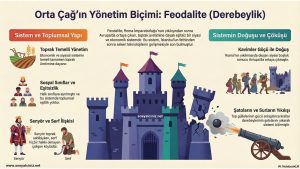 Ortaçağın yönetim biçimi feodalite (derebeylik) hakkında bilgi veren infografiktir…