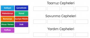 T. C. İnkılap Tarihi Online Etkinlikleri, Online Oyunlar, Osmanlı Devletinin Savaştığı Cepheler Online Gruplama