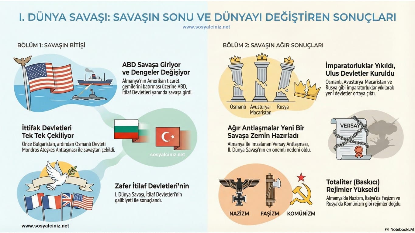 Osmanlı Devletinin I.Dünya Savaşında Savaştığı Cepheler ve I.Dünya Savaşın Sonuçlarını gösteren infografik çalışmasıdır…