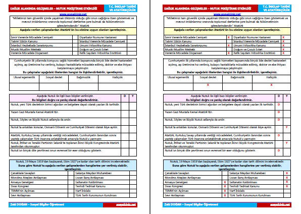 Sağlık Alanında Gelişmeler-Nutuk Pekiştirme Etkinliği