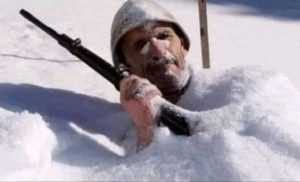 Yemen cephesinden Sarıkamış cephesine sevk edilen askerlerden olduğu için üzerinde kışlık elbisesi bile yoktur.