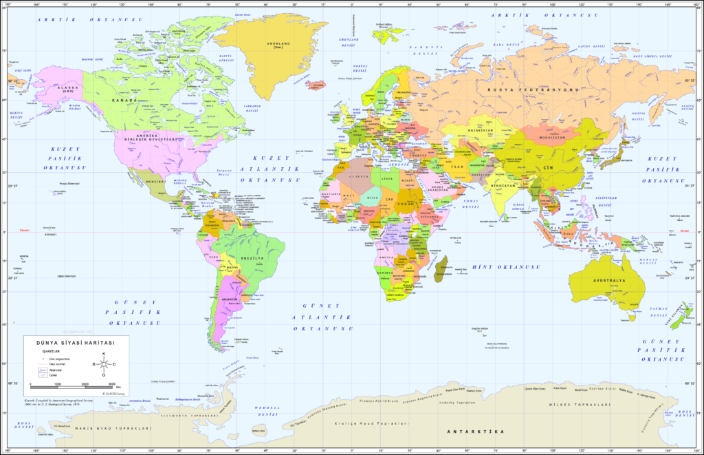Renk Kullanımı: Farklı ülkeler veya bölgeler genellikle farklı renklerle gösterilir. Bu, haritanın okunabilirliğini artırır.