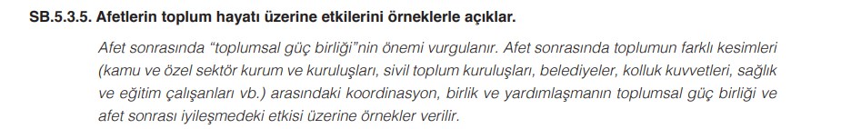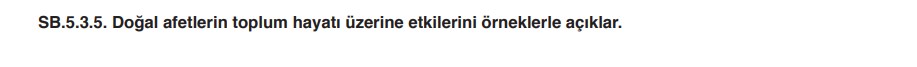 SB.5.3.5. Doğal afetlerin toplum hayatı üzerine etkilerini örneklerle açıklar.