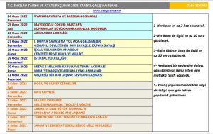 T.C. İnkılap Tarihi 2022 Yarıyıl Tatili Çalışma Programı
