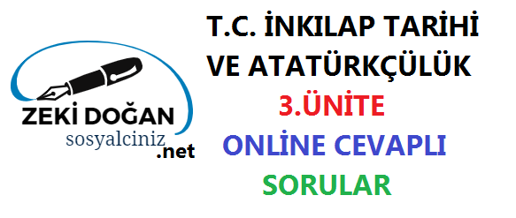 T.C. İnkılap Tarihi 3.Ünite Online Cevaplı Sorular (20 soru)