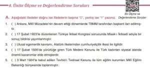 T.C. İnkılap Tarihi Dersdestek 4.Ünite Ölçme ve Değerlendirme Soruları
