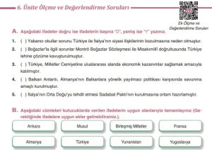 T.C.İnkılap Tarihi Dersdestek Kitabı 6. Ünite Ölçme ve Değerlendirme Soruları