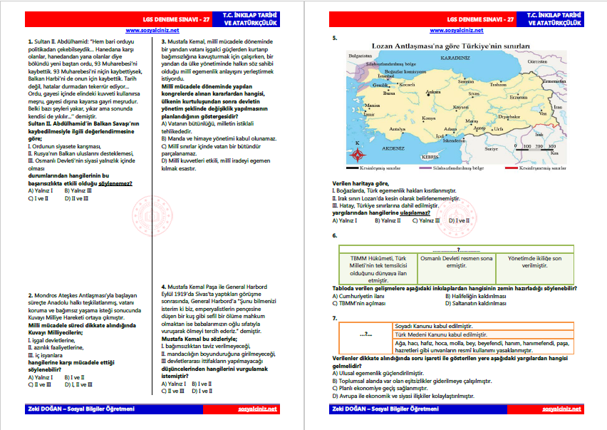 T.C. İnkılap Tarihi LGS Deneme Sınavı-27 İNDİR