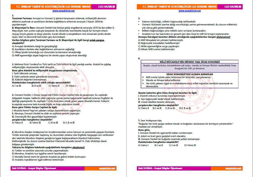 T.C. İnkılap Tarihi LGS Deneme Sınavı-8