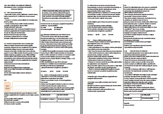 T. C. İnkılap Tarihi LGS Deneme Sınavı Ramazan BUDAK 2 İNDİR