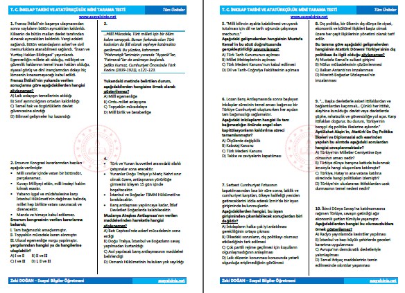 T.C. İNKILAP TARİHİ MİNİ LGS TARAMA TESTİ İNDİR