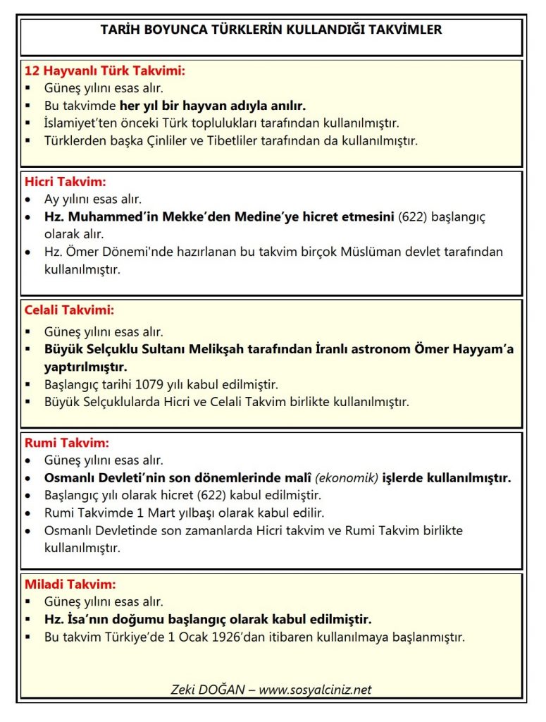 Tarih Boyunca Türklerin Kullandığı Takvimler