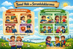 Temel Hak ve Sorumluluklarımız 6.Sınıf Sosyal Bilgiler Yaşayan Demokrasimiz Temel Hak ve Sorumlukların Toplumsal Düzenin Sürdürülmesindeki Önemi infografiğidir..