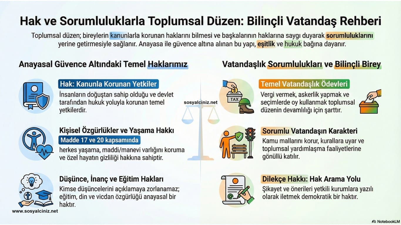 6.Sınıf Sosyal Bilgiler Yaşayan Demokrasimiz Temel Hak ve Sorumlukların Toplumsal Düzenin Sürdürülmesindeki Önemi infografiğidir..