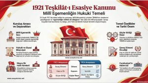 I.inönü Savaşından sonra hazırlanan 1921 Teşkilat-ı Esasiye Kanunu’nun önemli maddeleri ve özelliklerini gösteren infografik çalışmasıdır…
