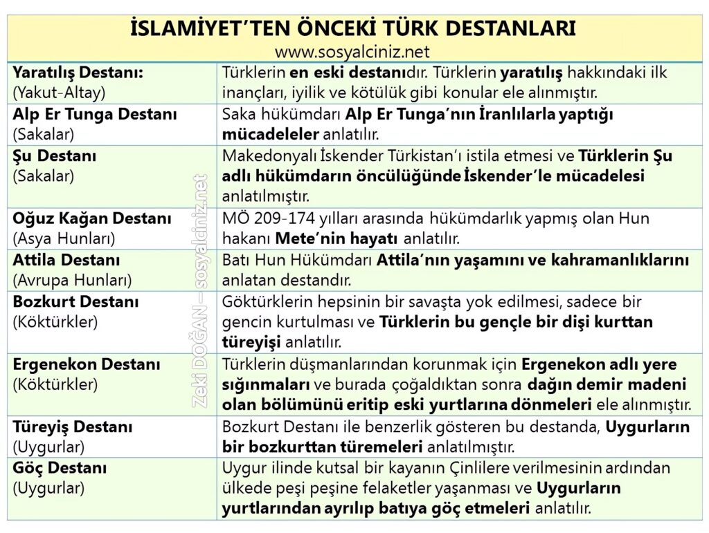 İslamiyetten Önceki Türk Destanları Tablo