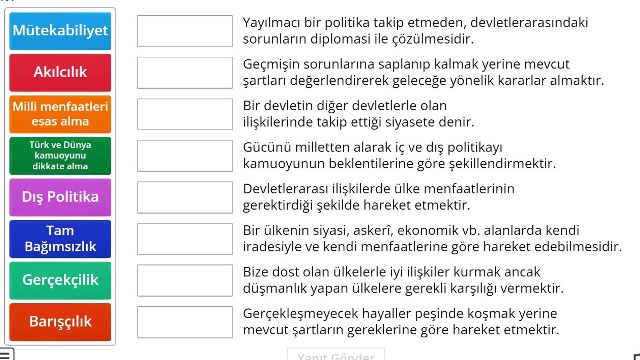 Türk Dış Politikasının Temel İlkeleri Online Eşleştirme