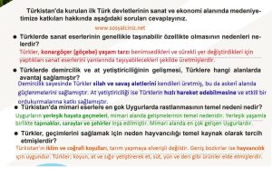 6.Sınıf Sosyal Bilgiler Sayfa 124 Türkistan’da kurulan ilk Türk devletlerinin sanat ve ekonomi alanında medeniyetimize katkıları