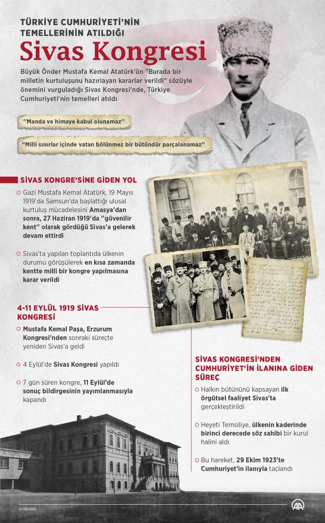 Büyük Önder Mustafa Kemal Atatürk’ün “Burada bir milletin kurtuluşunu hazırlayan kararlar verildi” sözüyle önemini vurguladığı Sivas Kongresi’nde, Türkiye Cumhuriyeti’nin temelleri atıldı.