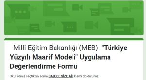 Türkiye Yüzyılı Maarif Modeli Uygulama Değerlendirme Formu