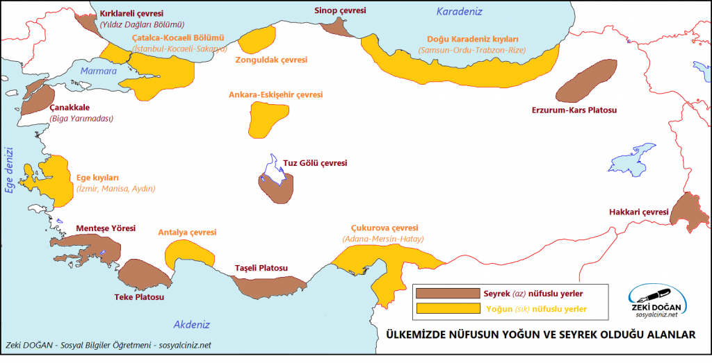 Türkiye’de Nüfusun Yoğun ve Seyrek Olduğu Yerler
