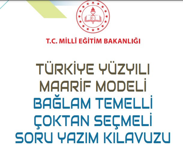 Millî Eğitim Bakanlığınca, Türkiye Yüzyılı Maarif Modeli kapsamındaki becerilerin ölçülmesine yönelik yürütülen çalışmalar sonucu hazırlanan “Bağlam Temelli Çoktan Seçmeli Soru Yazım Kılavuzu”; merkezî ve ortak sınavlar, okul geneli yazılılar, ders kitapları ve yardımcı materyallerin hazırlanmasında temel kaynak olarak kullanılacak.