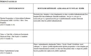 TYMM Okul Değerlendirme Uygulama Çizelgesi EK 1