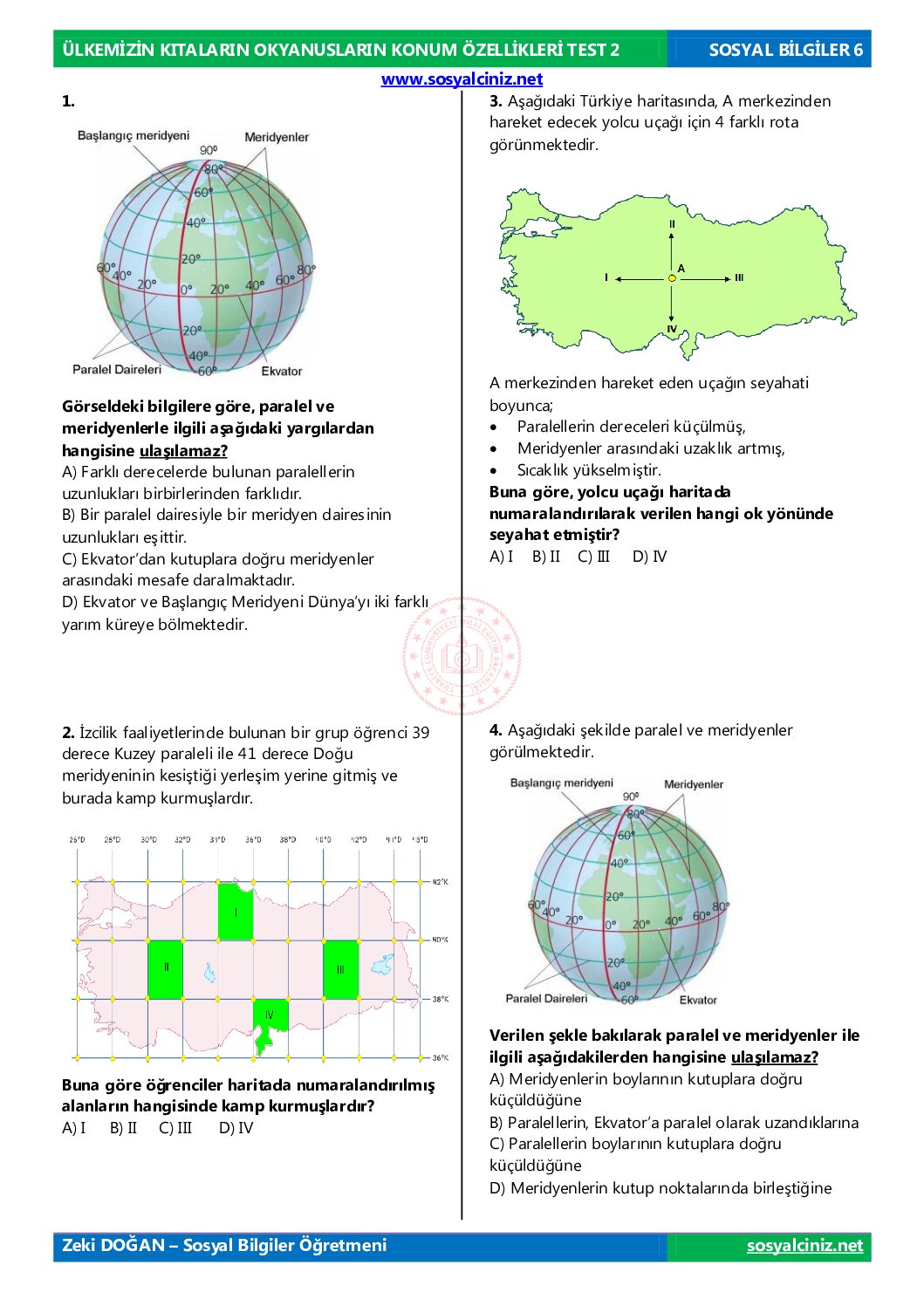 ÜLKEMİZİN KITALARIN OKYANUSLARIN KONUM ÖZELLİKLERİ TEST 2