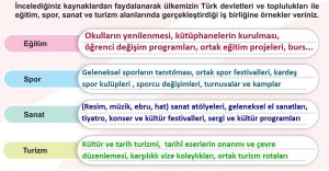6.sınıf Sosyal Bilgiler 2.Öğrenme Alanı Ülkemizin Türk Dünyası ile Kültürel İşbirlikleri konusu sayfa 99’da yer alan etkinliğin cevaplarıdır.
