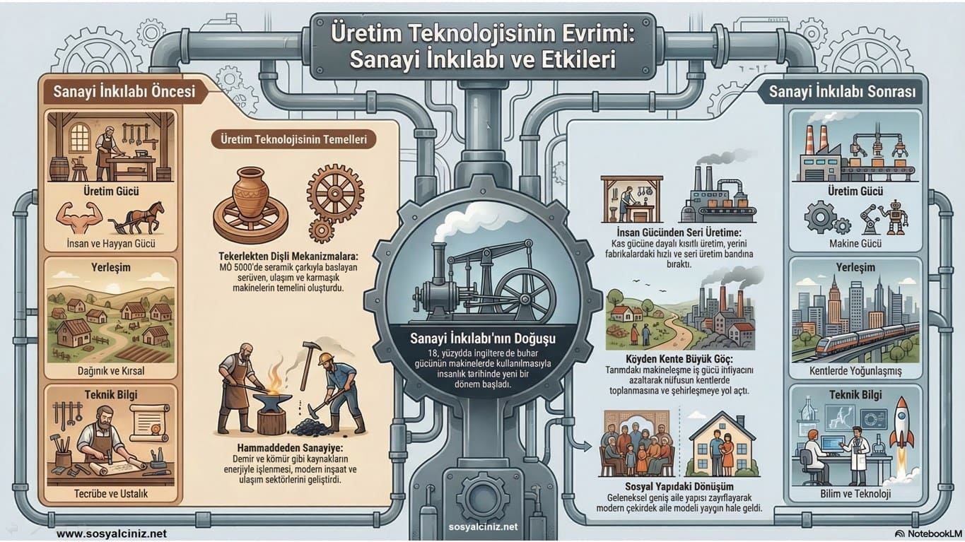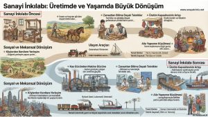 Üretim Teknolojisinde meydana gelen gelişmeler ile Sanayi İnkılabı Öncesi ve Sonrasını gösteren infografik çalışma…