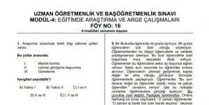 Anasayfa » Uzman Öğretmenlik ve Başöğretmenlik » Uzman Öğretmenlik ve Başöğretmenlik Eğitimde Araştırma ve Arge Çalışmaları Deneme Sınavı