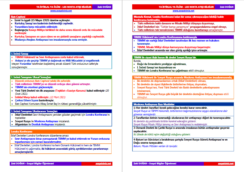 T.C. İnkılap Tarihi Ya İstiklal Ya Ölüm LGS Nokta Atışı Bilgiler İNDİR